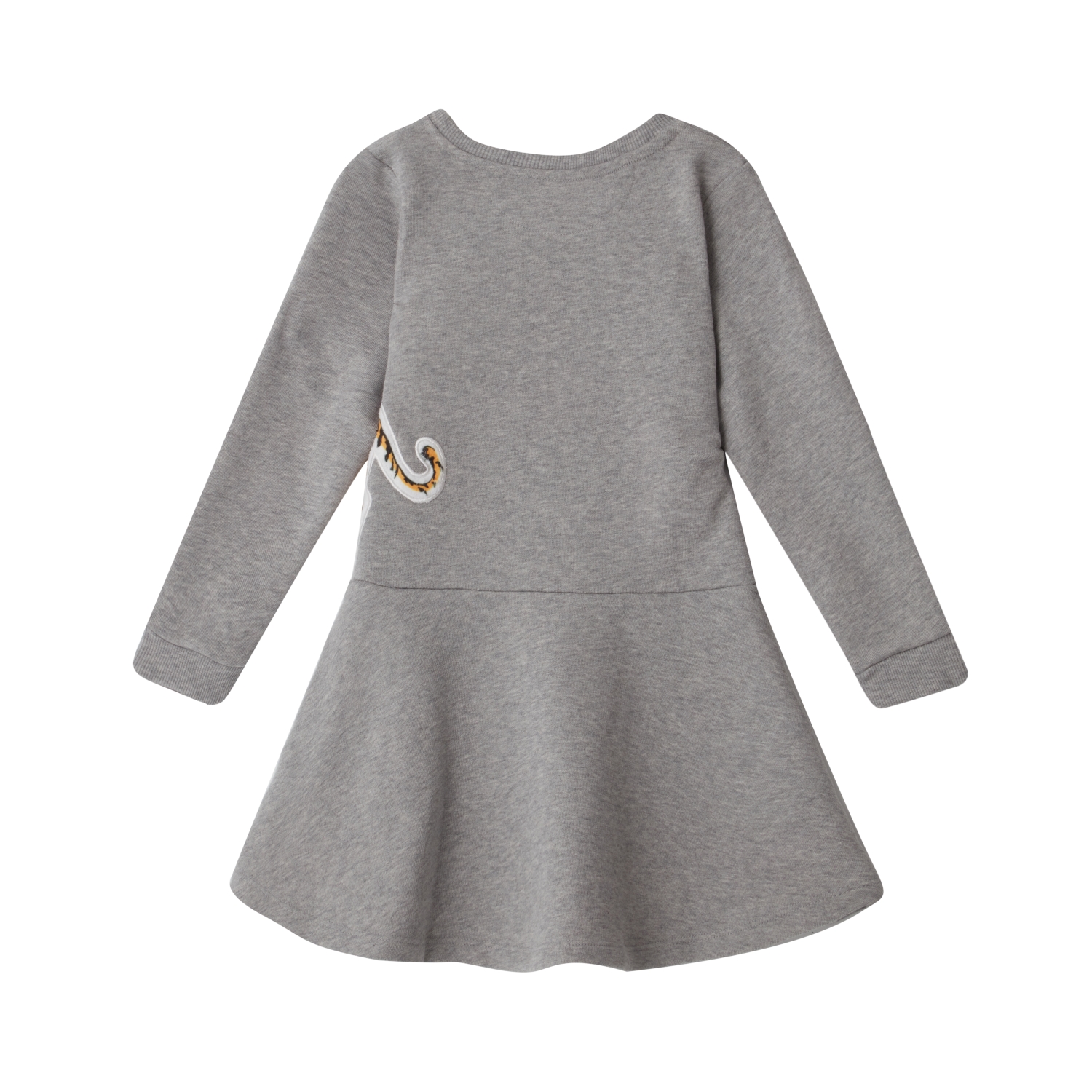 A greymelange sweatshirt dress in soft organic cotton with a fluffy tiger badge