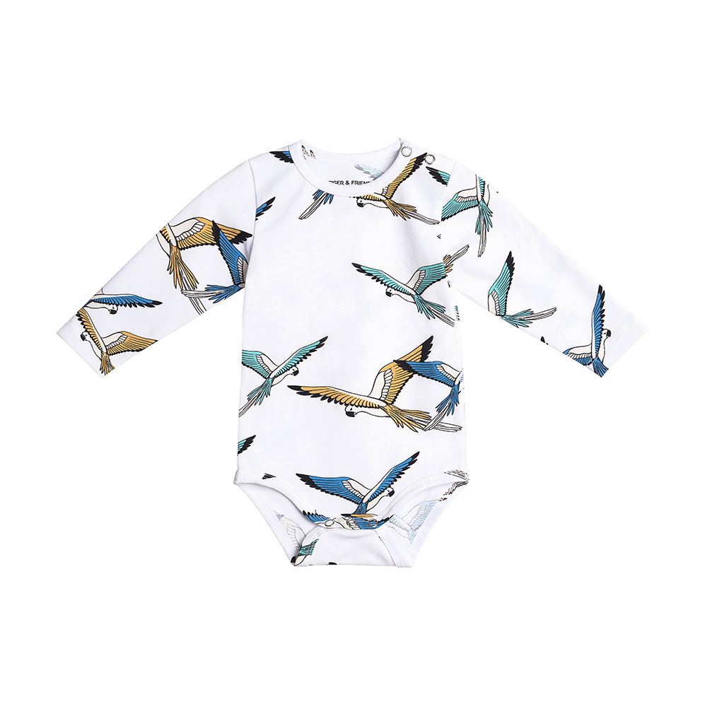 Long-sleeved bodysuit in soft cotton jersey with an allover parrot print