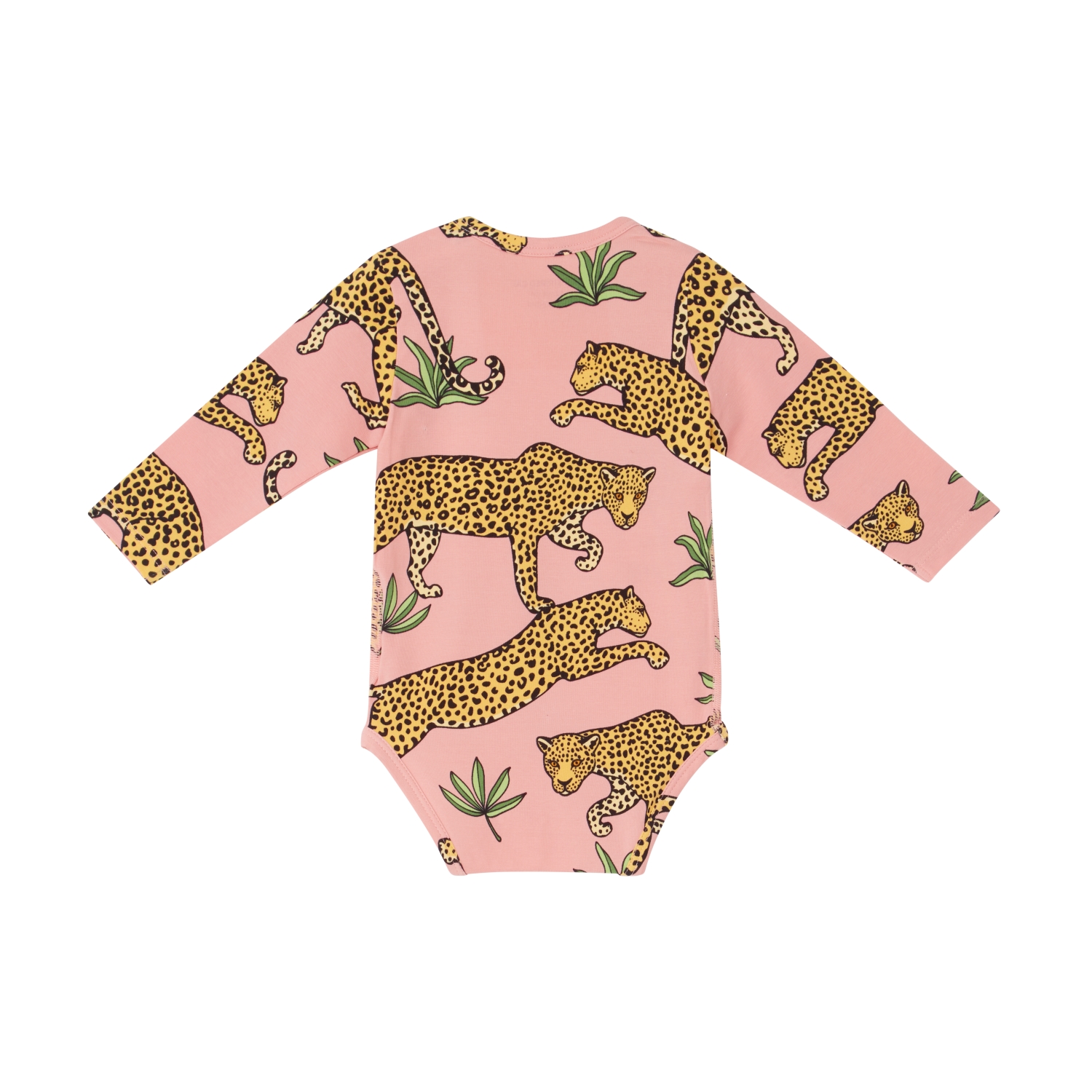Long-sleeved bodysuit in soft cotton jersey with an allover leopard print
