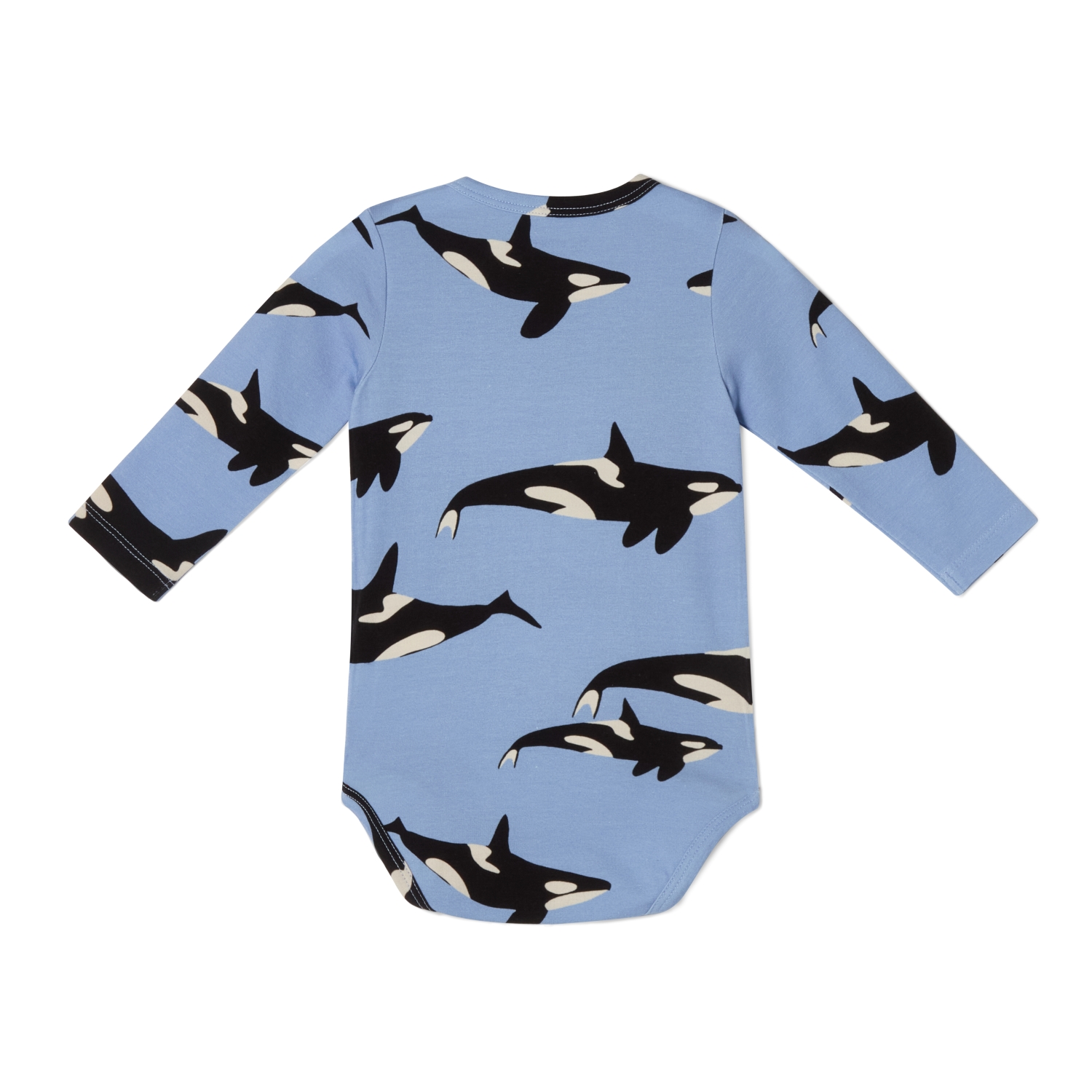 Long-sleeved bodysuit in soft cotton jersey with an allover orca print