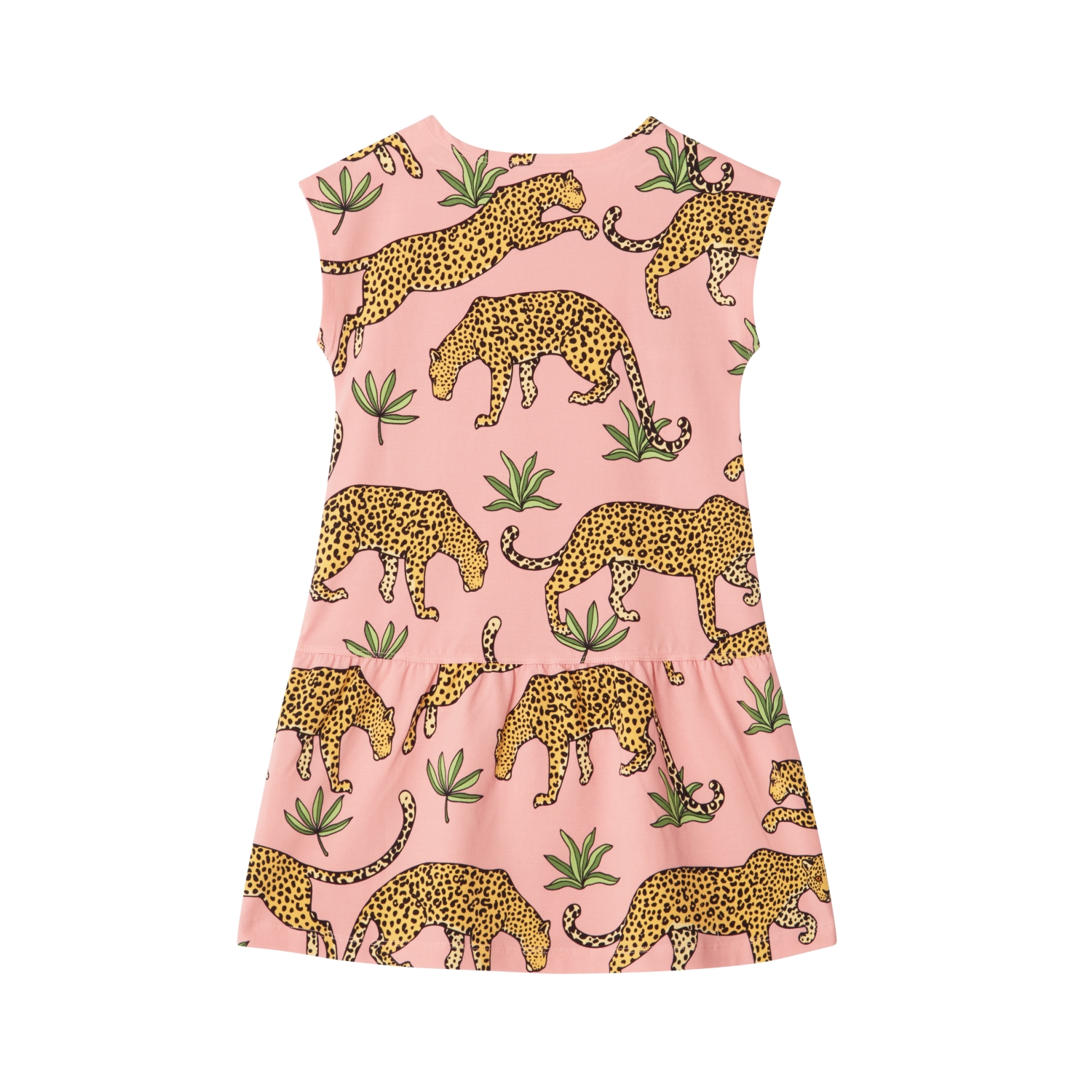 Short-sleeved dress in soft organic cotton jersey with an allover leopard print