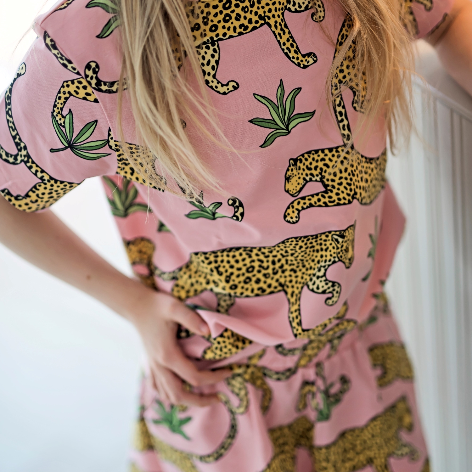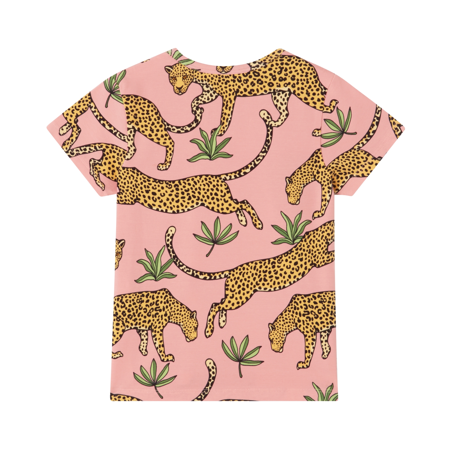 Short-sleeved T-shirt in soft organic cotton jersey with an allover leopard print